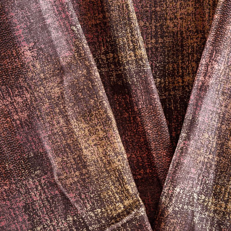 Плотная и мягкая ткань сложного оттенка с абстрактным принтом, имеет саржевое плетение и характерный диагональный рубчик на поверхности. Отлично сохраняет форму, не сильно мнется и не деформируется в процессе эксплуатации. Красиво ложится в складки, поэтому прекрасно подойдет на длинные драпированные юбки и платья, на свободные брюки или шорты, топы, комбинезоны, а также для домашней одежды.