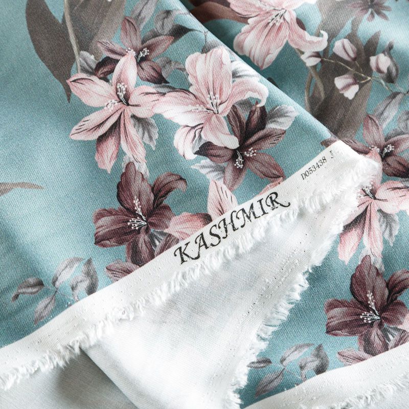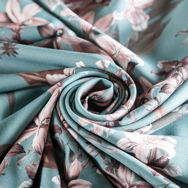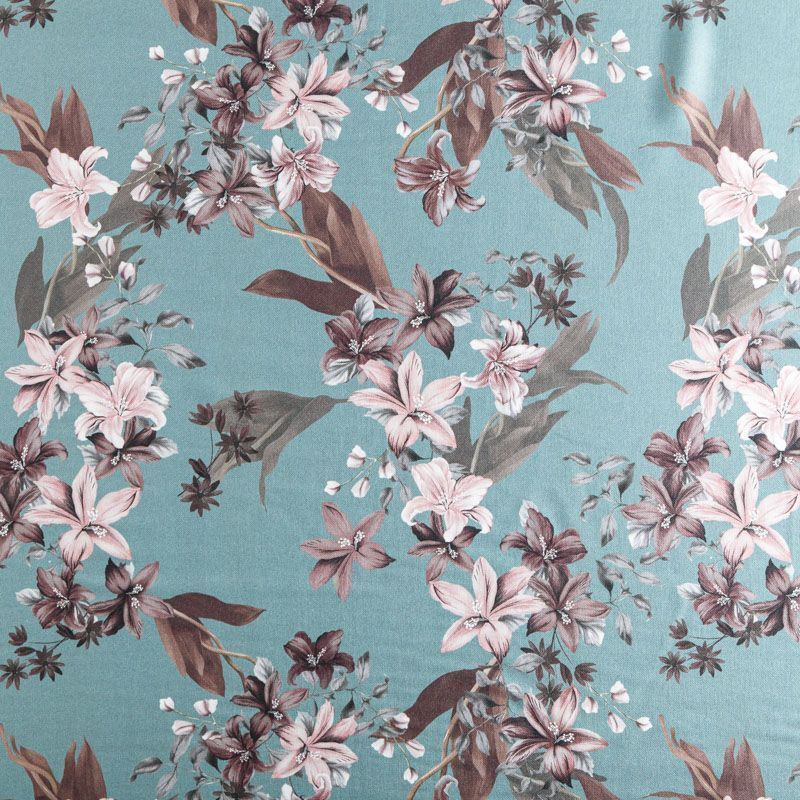 Твил-штапель 069-06479 серо-бирюзовый принтованный в Москве