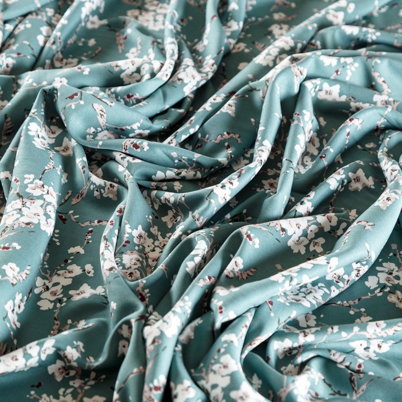 Плотная и мягкая ткань, имеет саржевое плетение и характерный диагональный рубчик на поверхности. Отлично сохраняет форму, не сильно мнется и не деформируется в процессе эксплуатации. Красиво ложится в складки, поэтому прекрасно подойдет на длинные драпированные юбки и платья, на свободные брюки или шорты, блузки, рубашки или топы.