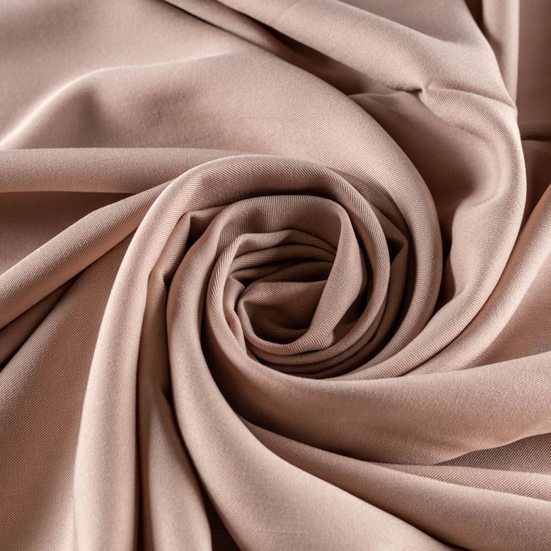 Мягкая ткань средней плотности, имеет саржевое плетение и характерный диагональный рубчик на поверхности. Отлично сохраняет форму, не сильно мнется и не деформируется в процессе эксплуатации.  Красиво ложится в складки, поэтому прекрасно подойдет на длинные драпированные юбки и платья, на свободные брюки или шорты, топы.