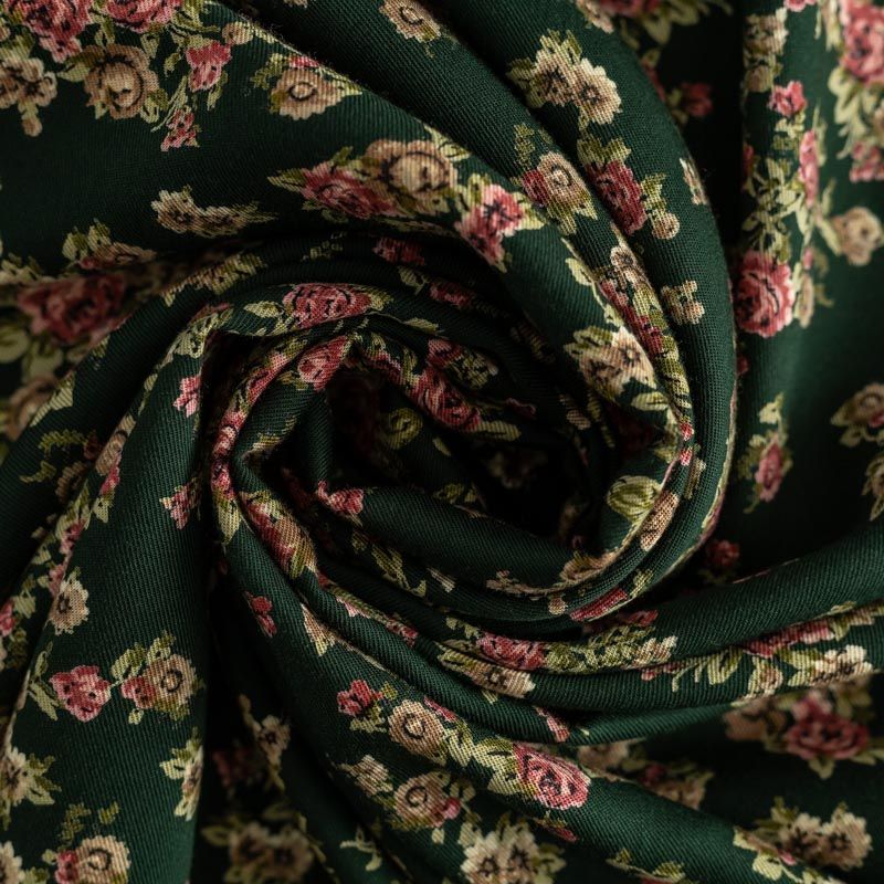 Твил-штапель К34-030 изумрудно-зеленый принтованный в Москве