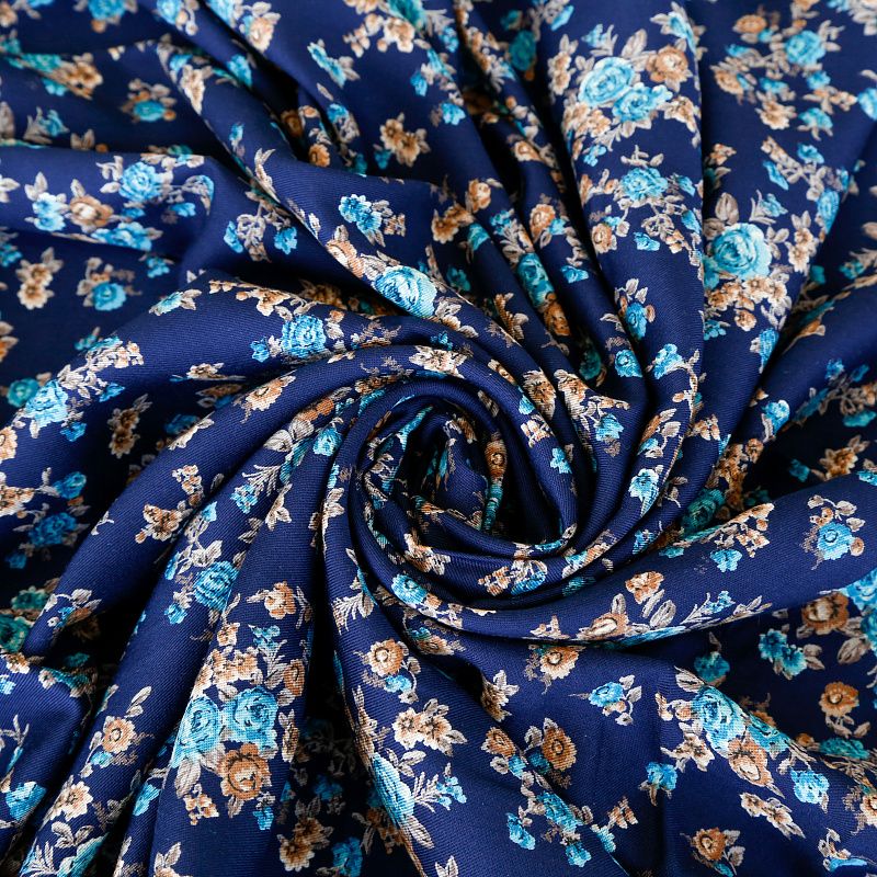 Твил-штапель К34-036 кобальтовый принтованный