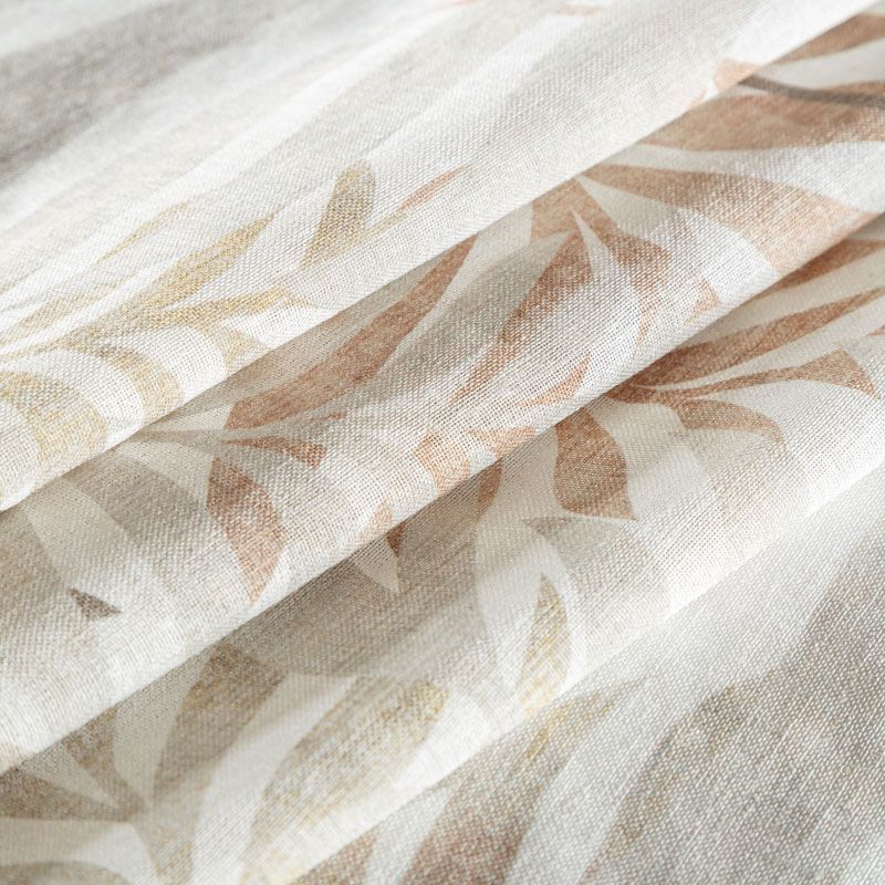 Полупрозрачная тюлевая ткань под лен с выразительной матовой рельефной поверхностью со стилизованным растительным принтом в бежево-коричневой гамме выглядит очень натурально и естественно. Красиво смотрится на любом карнизе и прекрасно подойдет для оформления различных помещений. Может использоваться как самостоятельно, так и в комплекте с плотными шторами. Нижний край оформлен утяжелителем.