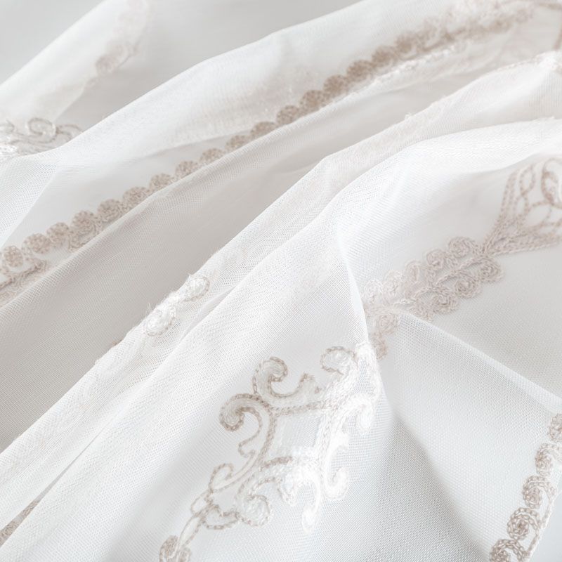Сетка с вышивкой – это роскошный элемент дизайна, который преобразит любое помещение. Главные плюсы тюли-микросетки – простота, лаконичность, практичность и многофункциональность. Она отлично пропускает воздух, поэтому быстро сохнет после стирки. Прочная, ткань прослужит долго. Она хорошо держит форму, устойчива к разрывам. Выдерживает большое количество стирок. Легкая, фактура ткани практически невесома, поэтому можно не опасаясь крепить ее даже на самый тонкий карниз. Ткань очень послушная в пошиве. Материал прекрасно кроится, поддается проклеиванию.