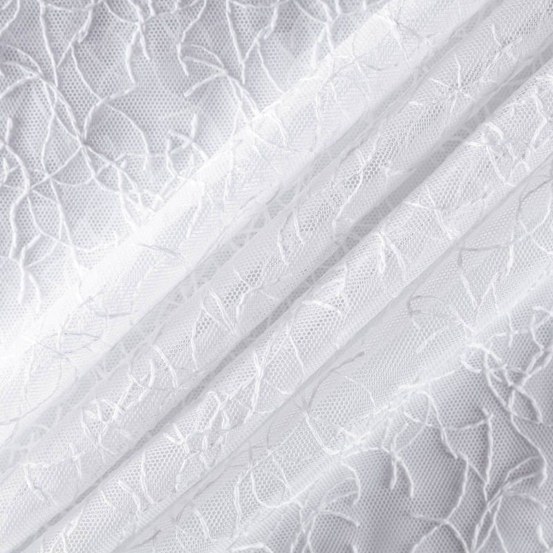 Сетка с вышивкой – это роскошный элемент дизайна, который преобразит любое помещение. Она отлично пропускает воздух, поэтому быстро сохнет после стирки. Прочная, ткань прослужит долго. Выдерживает большое количество стирок. Легкая, фактура ткани практически невесома, поэтому можно не опасаясь крепить ее даже на самый тонкий карниз. Вышивка в виде стилизованной паутинки белого цвета расположена по всей высоте ткани, нижний край без утяжелителя, фигурный.