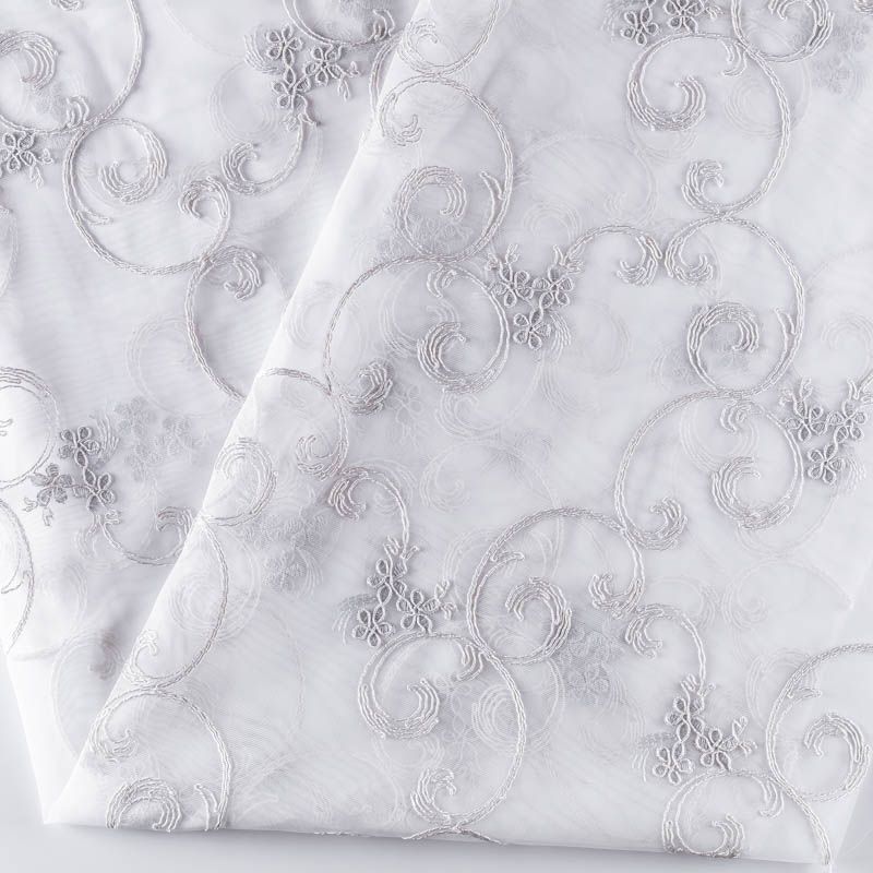 Сетка с вышивкой – это роскошный элемент дизайна, который преобразит любое помещение. Она отлично пропускает воздух, поэтому быстро сохнет после стирки. Прочная, ткань прослужит долго. Выдерживает большое количество стирок. Легкая, фактура ткани практически невесома, поэтому можно не опасаясь крепить ее даже на самый тонкий карниз. Сутажная элегантная вышивка в виде фантазийных завитков и вензелей расположена по всей высоте ткани, нижний край украшен купонной вышивкой, без утяжелителя, фигурный.
