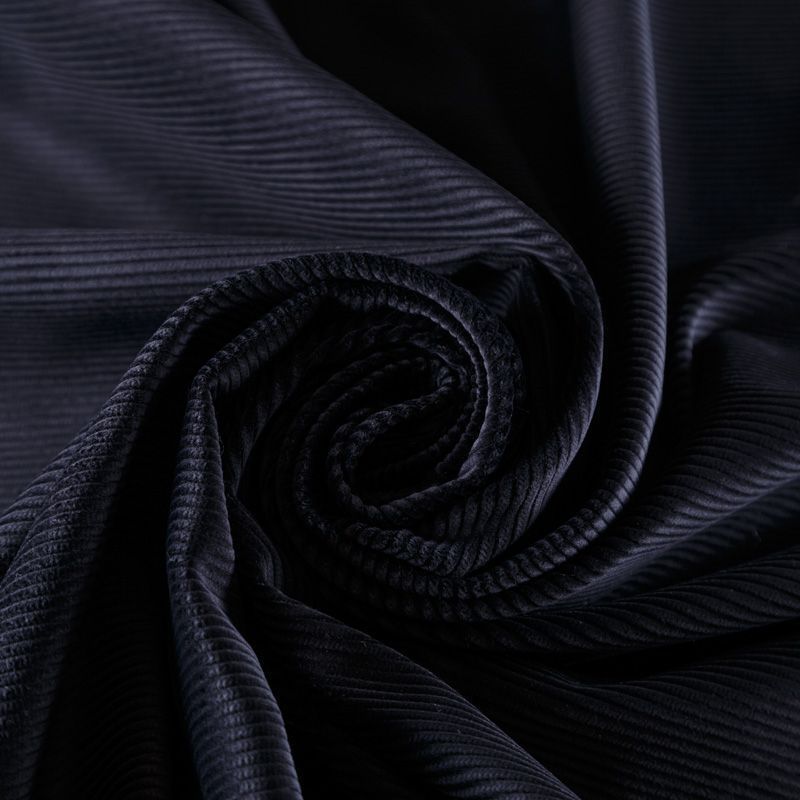 Итальянский костюмно-плательный вельвет из хлопка в черном оттенке. Очень приятный тактильно, поверхность бархатистая, рубчик средней ширины,  не тянется, не просвечивает. Подойдет для пошива костюма, платья, юбки, брюк, верхней одежды.