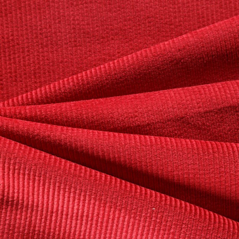 Итальянский хлопковый вельвет костюмно-плательной плотности красного оттенка. Ткань имеет матовую фактурную поверхность в рубчик средней ширины, ворс короткий, мягкий и приятный на ощупь. Тянется за счет эластана в составе, хорошо драпируется и держит форму. Прекрасный вариант для пошива костюма, юбки, широких брюк, шорт, комбинезона, жакета, куртки или тренча.