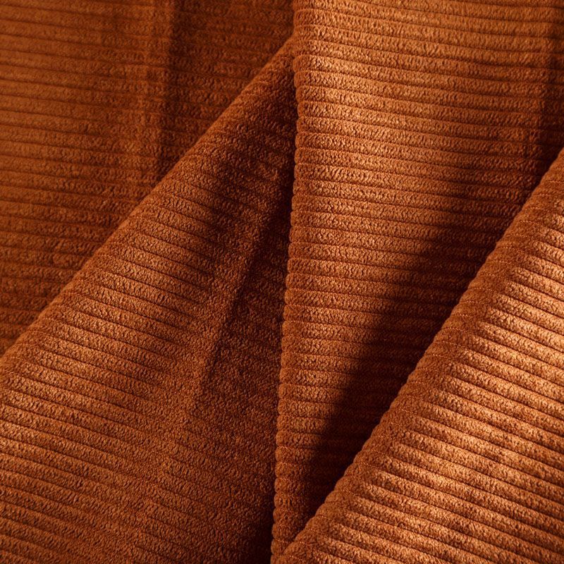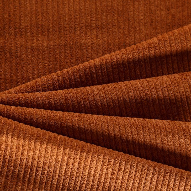 Плательно-костюмный вельвет средней плотности, но удивительно мягкий с матовым блеском и бархатистой поверхностью. За счет вытравки ворса лицевая сторона фактурная, в рубчик средней толщины. Ткань очень пластичная, хорошо и мягко драпируется, не мнется. Прекрасно подходит для пошива костюмов, жакетов, платьев, юбок, брюк, шорт, а также  для изготовления даже детской одежды.