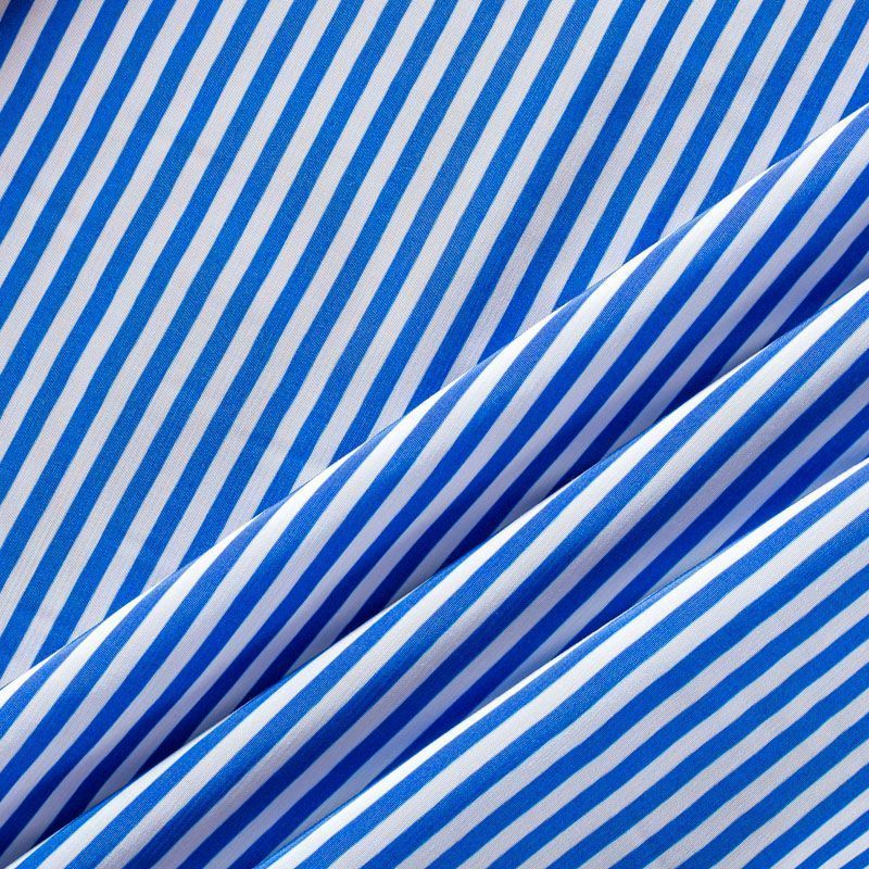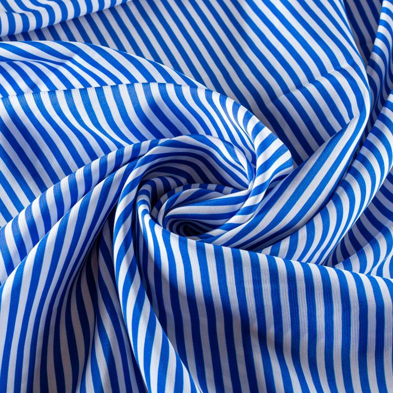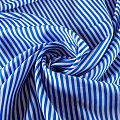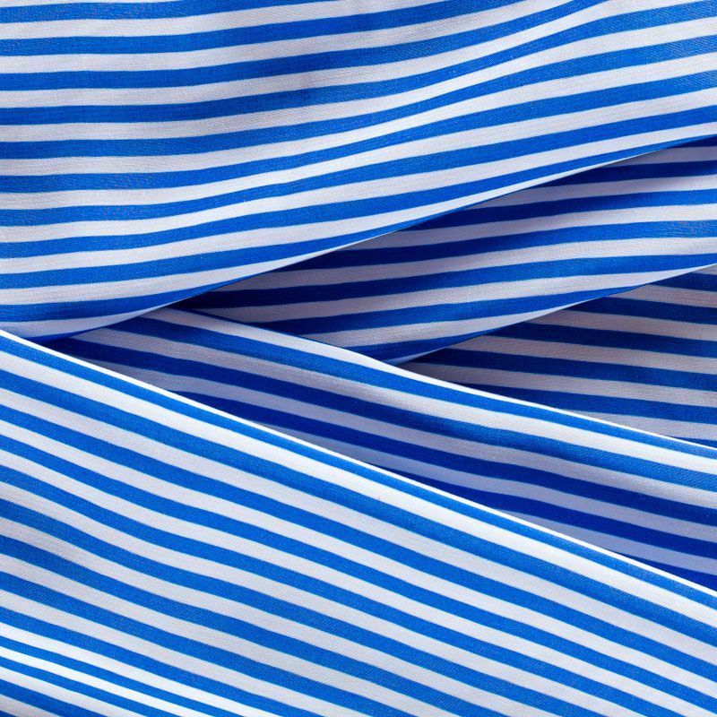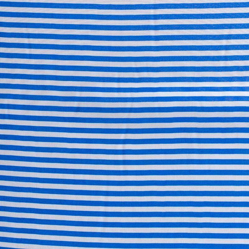 Плательно-рубашечная итальянская вискоза с принтом в горизонтальную полоску ярко-синего цвета. Натуральная, дышащая ткань, очень приятная к телу, отлично драпируется, струится, не просвечивает. Хорошо подойдет для пошива платьев, рубашек, платьев-рубашек, блуз, юбок, брюк, летних костюмов, пыльников, детской одежды.