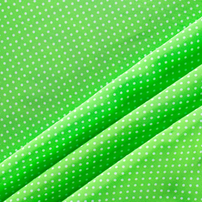 Плательно-рубашечная итальянская вискоза яркого салатового оттенка с принтом в мелкий горошек. Натуральная, дышащая ткань, очень приятная к телу, отлично драпируется, струится, не просвечивает. Хорошо подойдет для пошива платьев, рубашек, платьев-рубашек, блуз, юбок, брюк, летних костюмов, пыльников, детской одежды.