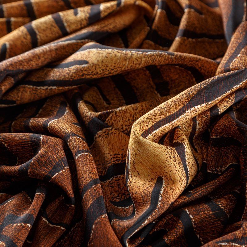 Итальянская плательно-блузочная вискоза с анималистическим мотивом на коричневом фоне. Ткань очень пластичная, отлично драпируется и струится, мягкая и приятная на ощупь, не просвечивает. Прекрасно подойдет для пошива платья, сарафана, рубашки, топа, блузки, юбки, летнего костюма.