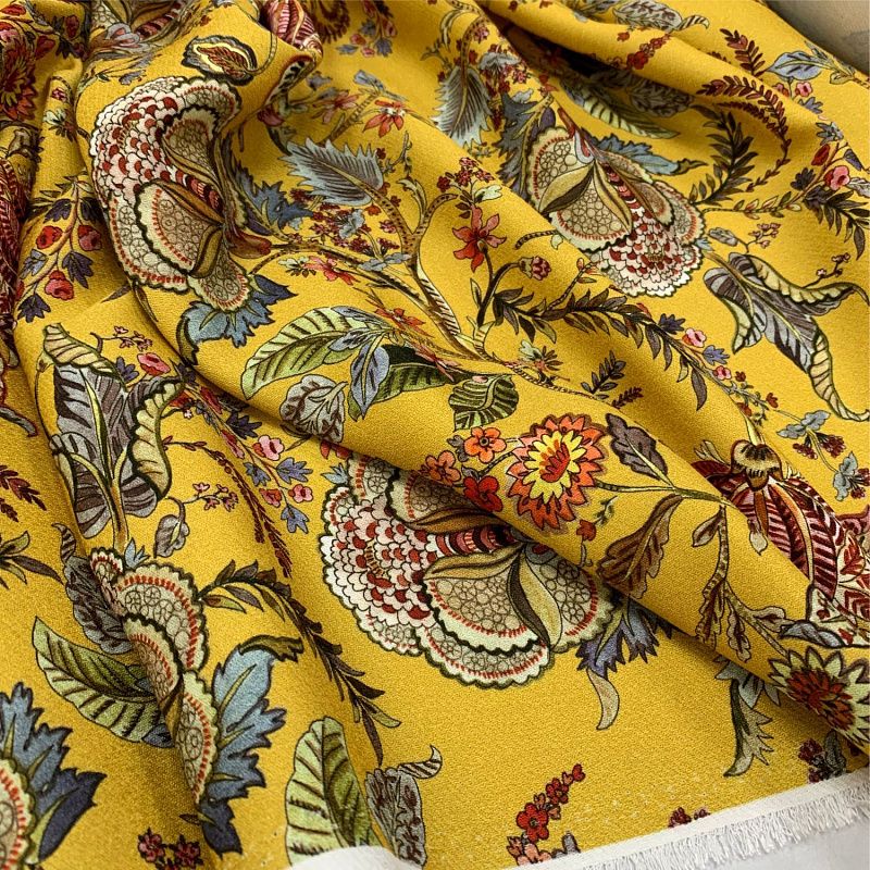 Вискоза 009-11698 шафрановый принтованный в Москве