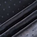 Атласная жаккардовая вискоза черного оттенка. Ткань плотная, но пластичная, хорошо драпируется и струится. Поверхность ткани гладкая, атласная, приятная на ощупь. Подойдет для пошива платья, сарафана, топа, блузки, рубашки, юбки, костюма в пижамном стиле, брюк свободного кроя, а также как подклад для верхней одежды.