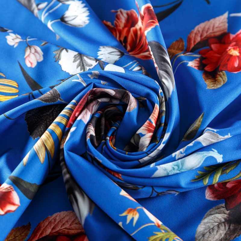 Легкая набивная ткань с цветочным принтом имеет высокую прочность, большую износоустойчивость. Ткань упругая, мягкая и хорошо драпируется, тянется за счет эластана в составе, образует струящиеся складки. Идеально подойдет для пошива блуз, юбок, платьев, сарафанов.