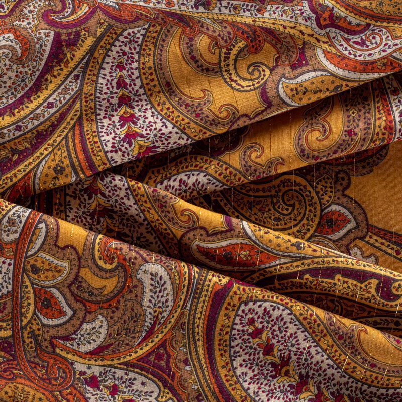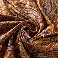 Итальянская плательно-блузочная вискоза с фантазийным растительным принтом пейсли в золотисто-коричневом оттенках декорирована тонкой люрексовой нитью. Ткань очень пластичная, отлично драпируется и струится, мягкая и приятная на ощупь, не просвечивает. Прекрасно подойдет для пошива платья, топа, блузки, юбки.