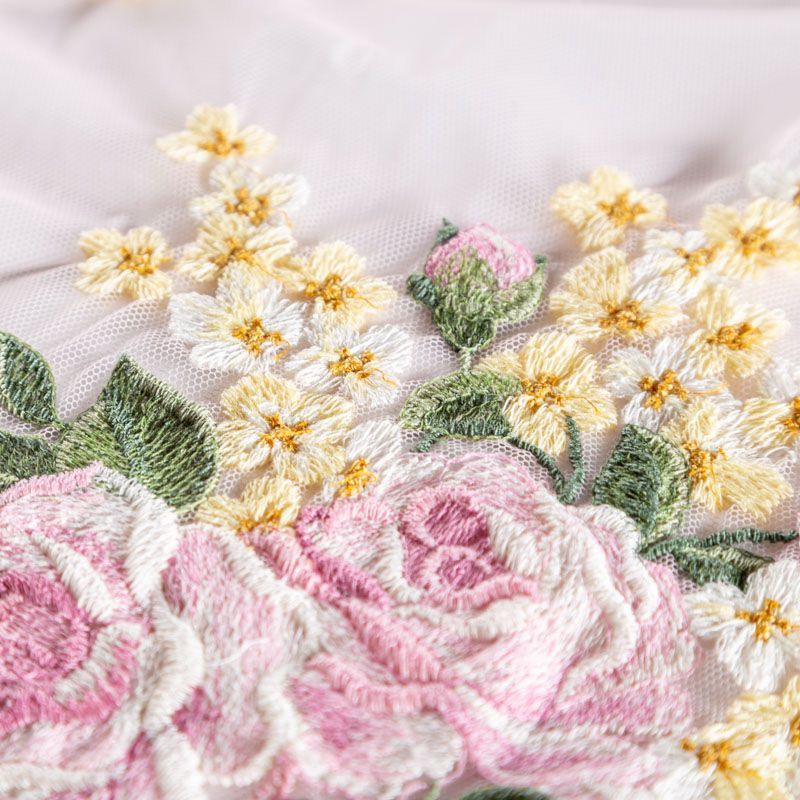 Вышивка на сетке Monnalisa высочайшего качества. Сетка пудрово-розового оттенка, мягкая, приятная на ощупь, отлично драпируется. Богатая объемная вышивка в виде роз выполнена идеально. Подойдет как для самостоятельного изделия: юбка, ярусное платье, так и для декорирования любых изделий: вставка в рукав, оборка и т.д.