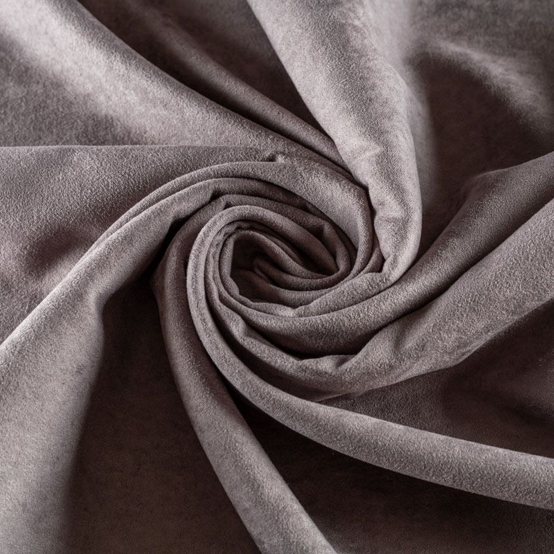 Ткань средней плотности с ворсистой и мягкой поверхностью, имитация замши. Практичная, износостойкая с высоким уровнем светонепроницаемости. Легко драпируется и держит заданную форму. Не сминается, быстро сохнет. Универсальная однотонная ткань, которая впишется в любой стиль интерьера в качестве портьер, римской шторы, скатерти, салфеток, декоративных чехлов, покрывал, подушек.