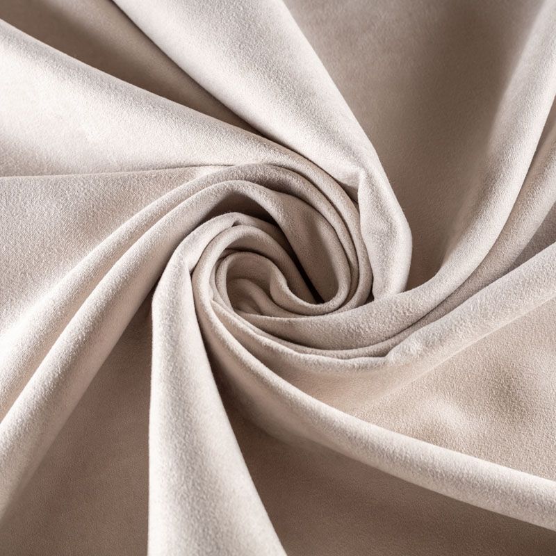 Ткань средней плотности с ворсистой и мягкой поверхностью, имитация замши. Практичная, износостойкая с высоким уровнем светонепроницаемости. Легко драпируется и держит заданную форму. Не сминается, быстро сохнет. Универсальная однотонная ткань, которая впишется в любой стиль интерьера в качестве портьер, римской шторы, скатерти, салфеток, декоративных чехлов, покрывал, подушек.