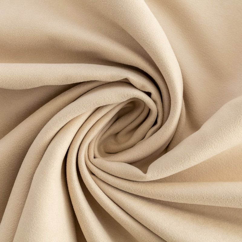 Ткань средней плотности с ворсистой и мягкой поверхностью, имитация замши. Практичная, износостойкая с высоким уровнем светонепроницаемости. Легко драпируется и держит заданную форму. Не сминается, быстро сохнет. Не требует дополнительного ухода.