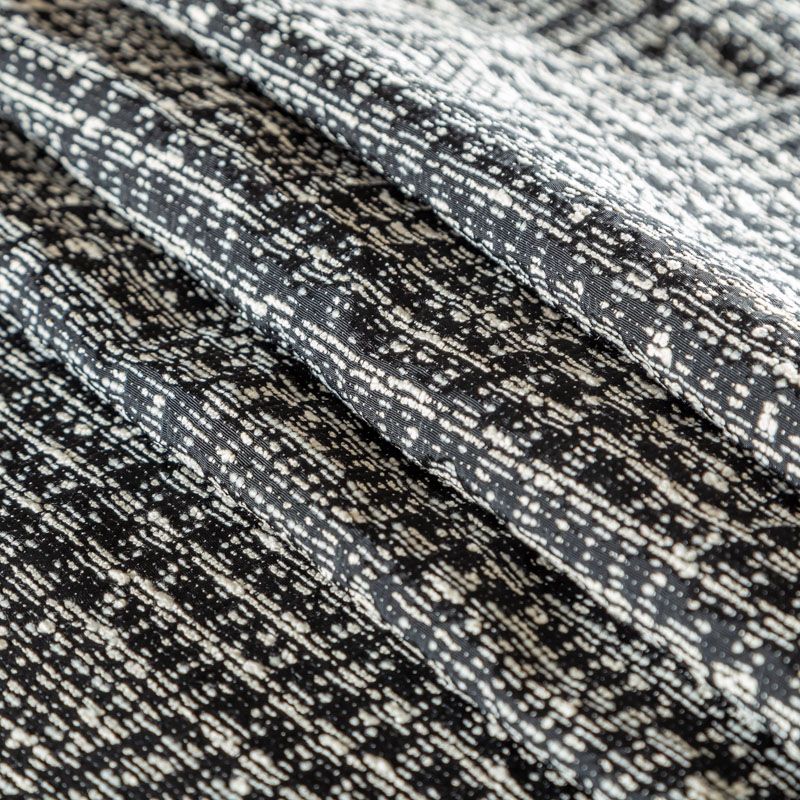 Итальяский плотный, но пластичный и не жесткий жаккард с хлопкоом, напоминающий гобелен черного цвета с добавлением нитей молочного оттенка. Ткань достаточно фактурная, держит форму, не просвечивает. Подойдет для пошива костюма, платьев-футляров в стиле Dior, жакетов, легких пальто, бомберов, юбок, брюк-палацио или шорт.