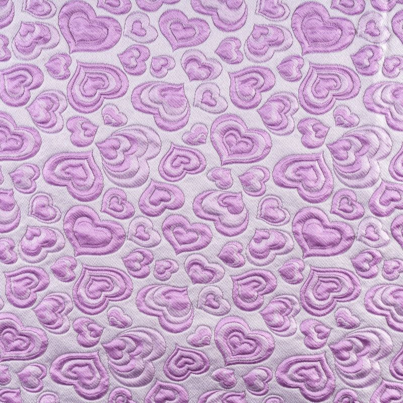 Итальянский жаккард с нежным и романтичным 3D дизайном из маленьких сердечек в сочетании холодного розового и сиреневого оттенков - очень стильный и оригинальный. Ткань легкая, поверхность со сдержанным блеском объемная и фактурная, хорошо драпируется, не тянется и не просвечивает. Подойдет для пошива нарядных вечерних костюмов, платьев-футляров или стиле Dior, жакетов, топов, летних пальто, юбок или шорт.