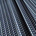 Мягкий хлопковый жаккард в серо-синей цветовой гамме с мелким абстрактным узором. Ткань пластичная, непрозрачная, приятная на ощупь, тянется за счет эластана в составе, форму не держит, но хорошо драпируется красивыми складками. Будет комфортна для пошива костюма, женственного платья, юбки или брюк.