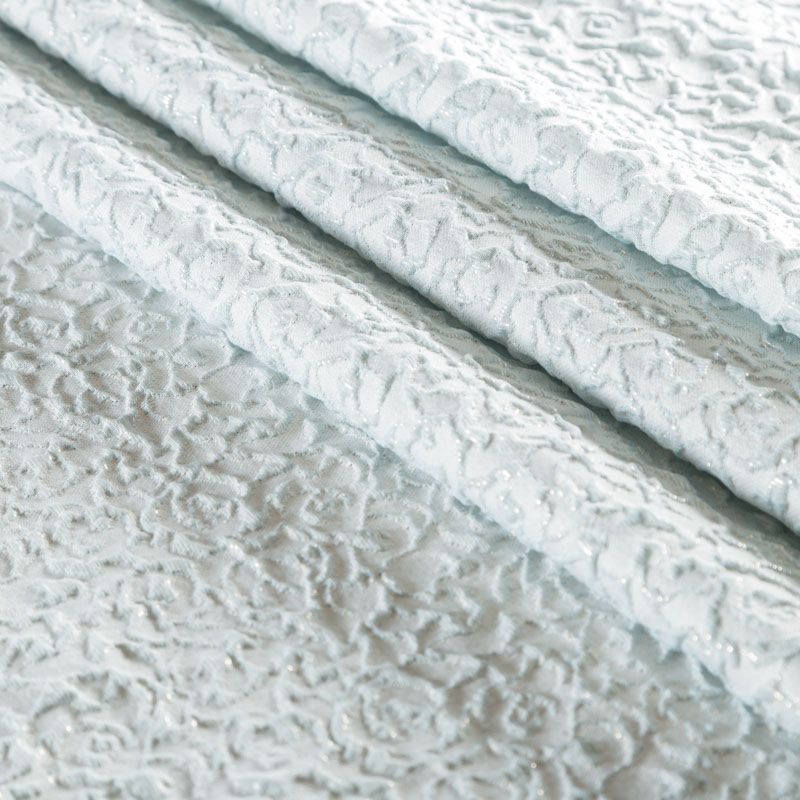 Нарядный жаккард с рельефным металлизированным стилизованным цветочным орнаментом. Ткань не жесткая, плотная, но легкая, дает возможность создавать пышные силуэты, объёмные драпировки. Применяется для пошива нарядной и вечерней одежды, платьев, юбок, шорт, корсетов, кардиганов, летних пальто.